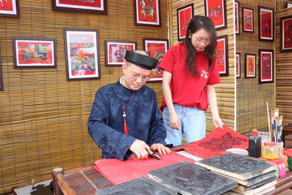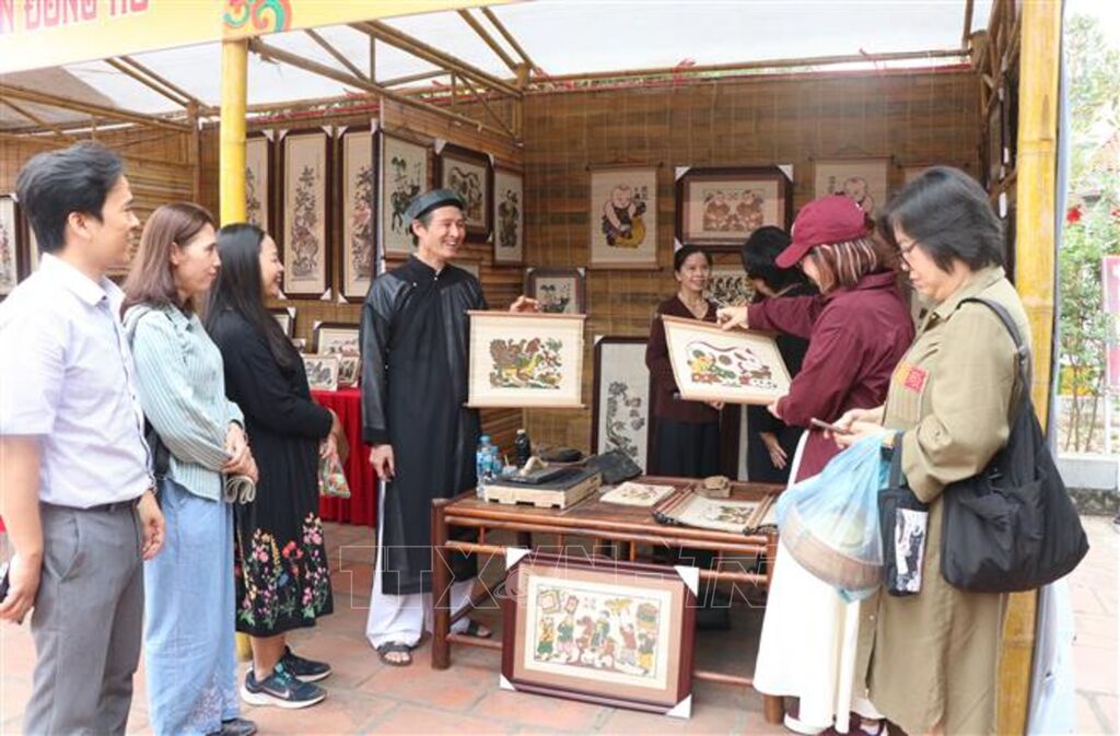 Bên cạnh đó, không gian trưng bày tái hiện chợ tranh Đông Hồ xưa cùng các hoạt động trình diễn nghệ thuật truyền thống như Quan họ, Chèo, hát Then, múa rối nước… góp phần mang đến cho công chúng những trải nghiệm văn hóa sống động, chân thực và giàu cảm xúc.
