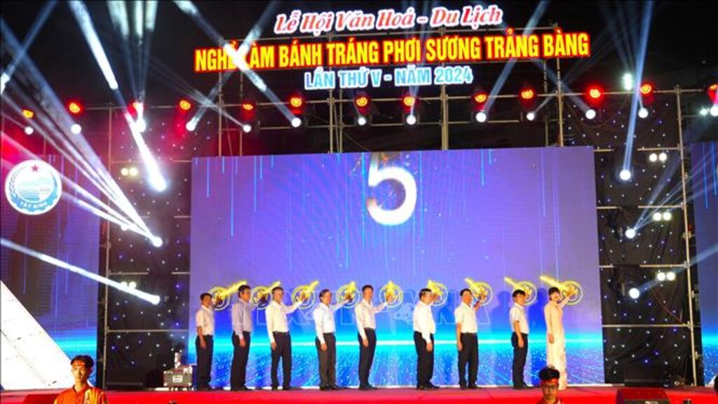 Tối 23/12, tại thị xã Trảng Bàng, tỉnh Tây Ninh, Lễ hội nghề làm bánh tráng phơi sương Trảng Bàng lần thứ 5, năm 2024 chính thức khai mạc.