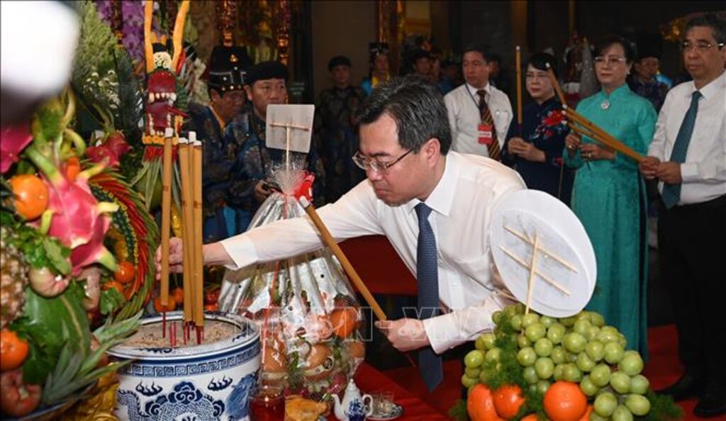 Lãnh đạo và nhân dân Thành phố Hồ Chí Minh thành kính dâng hương tưởng nhớ tổ tiên, ghi tạc công đức to lớn của các Vua Hùng, các bậc tiền nhân đã khai phá, tạo dựng nên non nước Việt Nam giàu đẹp.