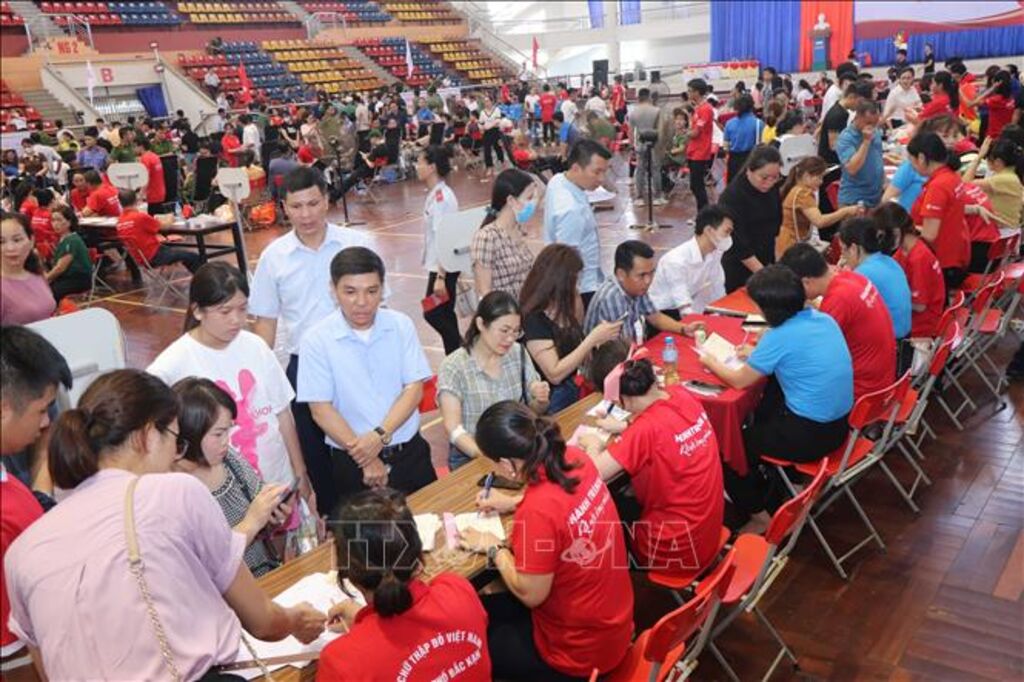 TTXVN - Ngày 7/7, hơn 1.200 công chức, viên chức, người lao động, cán bộ, chiến sỹ các lực lượng vũ trang, các đoàn viên, thanh niên và người dân trên địa bàn tỉnh Bắc Kạn tham gia Ngày hội ngày hội hiến máu tình nguyện với chủ đề "Giọt hồng - Bắc Kạn 2023". Đây là hoạt động hưởng ứng Hành trình đỏ "Kết nối dòng máu Việt" và hưởng ứng Chiến dịch "Những giọt máu hồng" - hè 2023.