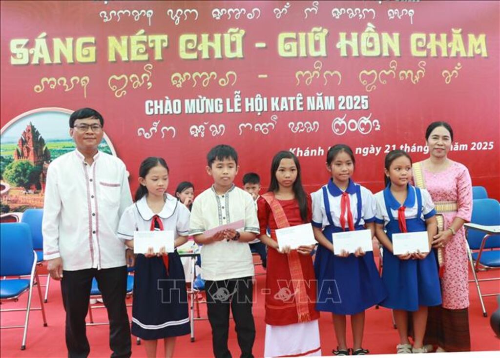Mới đây, trong khuôn khổ Lễ hội Katê năm 2025, tại Di tích quốc gia đặc biệt Tháp Pô Klong Garai (phường Đô Vinh), Sở Văn hóa, Thể thao và Du lịch tỉnh Khánh Hòa đã tổ chức Hội thi viết chữ Chăm với chủ đề “Sáng nét chữ - Giữ hồn Chăm”, thu hút đông đảo học sinh tiểu học và trung học cơ sở từ các trường đang triển khai dạy tiếng Chăm tham gia.