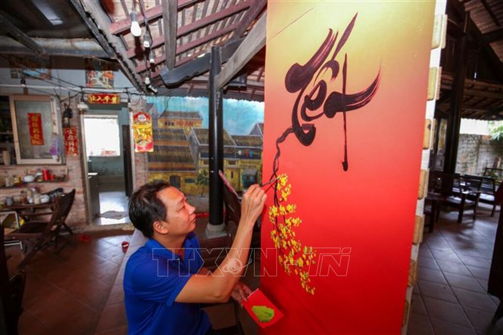 Từ phác thảo ý tưởng đến trực tiếp thi công, anh chăm chút từng tiểu cảnh, từng mảng màu mang đậm hơi thở Tết quê với hoa mai, hoa đào, bánh chưng, bánh tét, câu đối đỏ, hình ảnh làng xưa. Với Trường Sơn, mỗi công trình không chỉ là sản phẩm trang trí, mà còn là cách kể câu chuyện về mùa xuân truyền thống bằng ngôn ngữ hội họa đương đại. “Dù bận rộn, nhưng được góp phần làm không khí Tết rộn ràng hơn, giữ được hồn Tết quê hơn, tôi thấy rất vui và có thêm động lực”, anh Sơn chia sẻ.