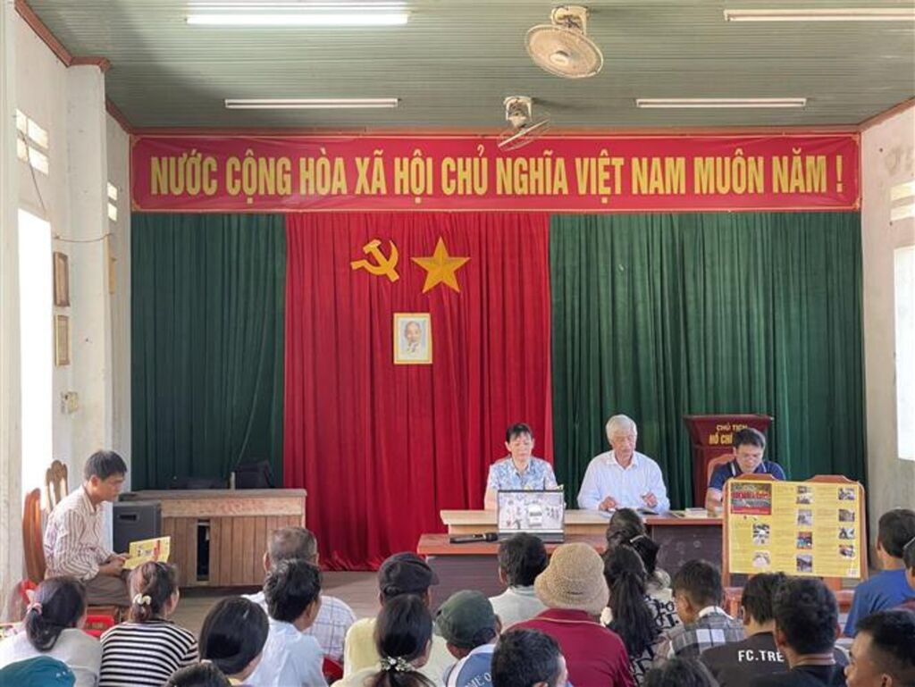 Viện Vật lý địa cầu tổ chức các buổi tuyên truyền tại nhà Rông, nhà văn hóa, hội trường UBND xã, trường học…, thu hút rất đông người dân tham dự. Những kiến thức được cung cấp tại đây sẽ giúp người dân có thêm niềm tin, kỹ năng thiết thực để không hoảng loạn, kịp thời áp dụng các biện pháp an toàn cho bản thân, gia đình khi động đất xảy ra. Dự kiến, việc tuyên truyền được Viện Vật lý địa cầu thực hiện đến hết ngày 4/8.à văn hóa, hội trường UBND xã, trường học…, thu hút rất đông người dân tham dự. Những kiến thức được cung cấp tại đây sẽ giúp người dân có thêm niềm tin, kỹ năng thiết thực để không hoảng loạn, kịp thời áp dụng các biện pháp an toàn cho bản thân, gia đình khi động đất xảy ra. Dự kiến, việc tuyên truyền được Viện Vật lý địa cầu thực hiện đến hết ngày 4/8.