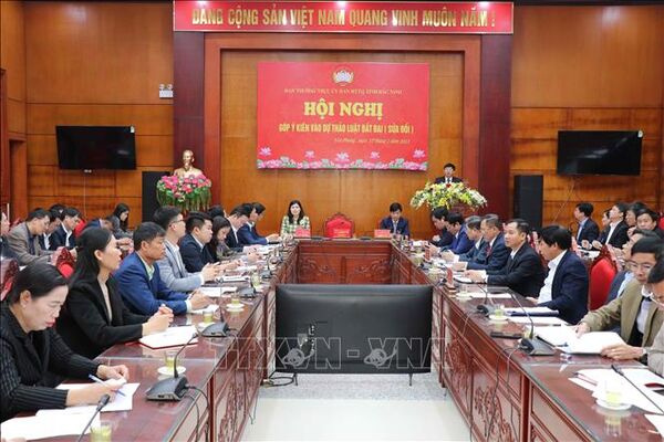 TTXVN - Chiều 24/2, tại Huyện ủy huyện Thuận Thành, Ban Thường trực Ủy ban MTTQ Việt Nam tỉnh Bắc Ninh phối hợp với Đoàn đại biểu Quốc hội tỉnh và huyện Thuận Thành tổ chức Hội nghị góp ý kiến vào dự thảo Luật Đất đai (sửa đổi) khu vực huyện Thuận Thành, huyện Gia Bình và huyện Lương Tài, tỉnh Bắc Ninh.