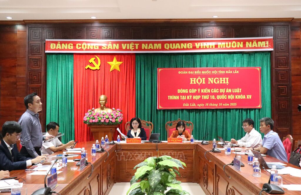 Chiều 16/10, Đoàn đại biểu Quốc hội tỉnh Đắk Lắk tổ chức Hội nghị đóng góp ý kiến các dự án Luật trình tại Kỳ họp thứ 10, Quốc hội khóa XV.