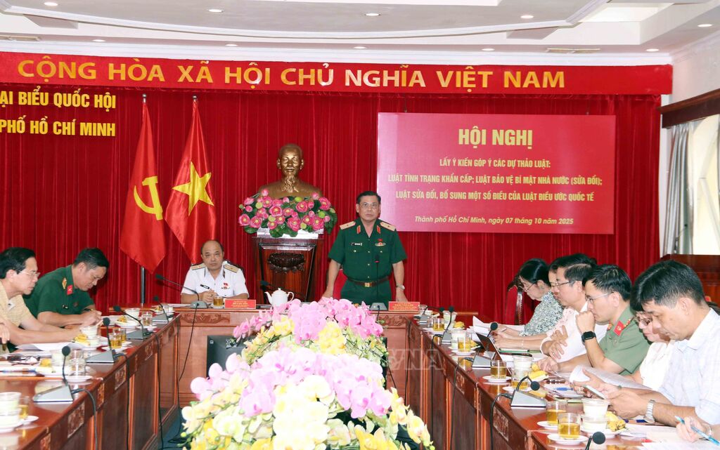 Chiều 7/10, Đoàn đại biểu Quốc hội Thành phố Hồ Chí Minh tổ chức Hội nghị lấy ý kiến đóng góp các dự thảo luật gồm Luật Tình trạng khẩn cấp; Luật Bảo vệ bí mật nhà nước (sửa đổi); Luật sửa đổi, bổ sung một số điều của Luật Điều ước quốc tế sẽ được Quốc hội xem xét, dự kiến thông qua tại Kỳ họp thứ 10 sắp tới.