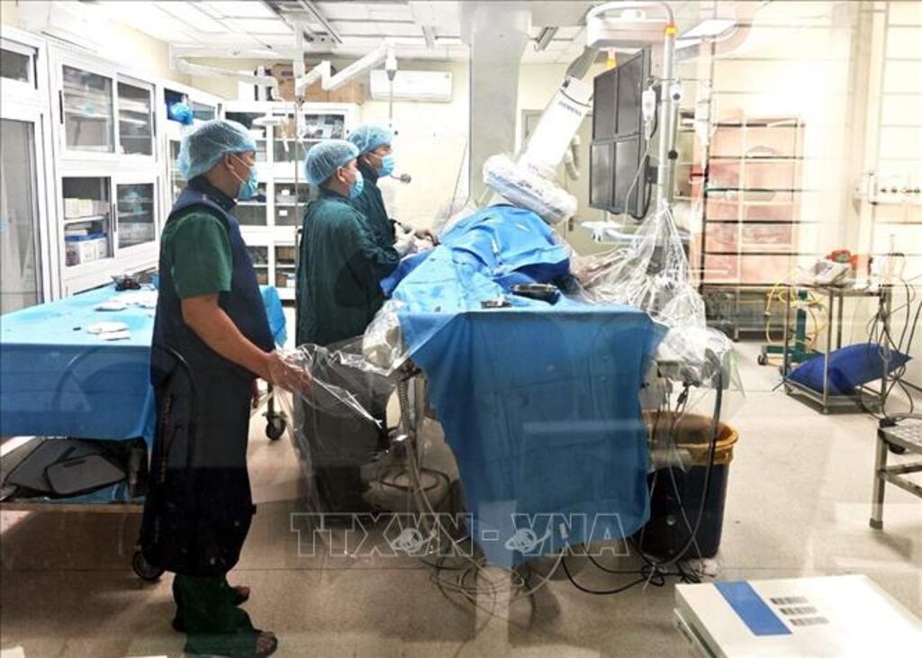 Được sự cho phép của lãnh đạo Sở Y tế và các ngành chức năng, Bệnh viện đã tiến xử trí chống sốc, đặt stent 1 mạch vành nhánh phải. Kết quả chụp mạch cho thấy bệnh nhân bị tắc hoàn toàn động mạch vành bên phải, mạch máu tổn thương.