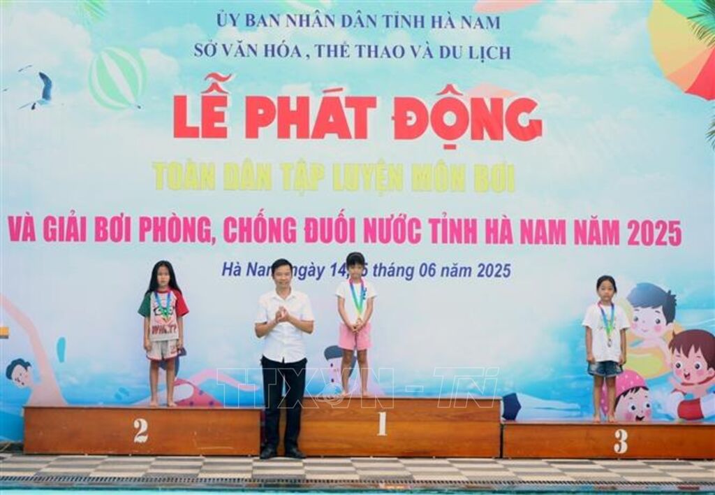 Ngày 14/6, Sở Văn hóa, Thể thao và Du lịch tỉnh Hà Nam tổ chức Lễ Phát động toàn dân tập luyện môn bơi và Giải bơi phòng, chống đuối nước năm 2025. Đây là hoạt động thiết thực, nhằm tuyên truyền về lợi ích và tác dụng của môn bơi, các kỹ năng an toàn trong môi trường nước và công tác phòng, chống tai nạn đuối nước. Qua đó, Ban tổ chức cũng thúc đẩy phát triển phong trào dạy bơi, học bơi, tạo sân chơi bổ ích lành mạnh, nâng cao sức khỏe, cải thiện thể chất cho học sinh, thiếu niên, nhi đồng, góp phần giảm thiểu tai nạn đuối nước trong cộng đồng.