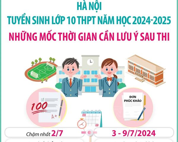 Học sinh (nếu có nguyện vọng) sẽ làm đơn phúc khảo bài thi gửi tới trường Trung học Cơ sở - nơi học sinh học lớp 9. Thời gian nộp đơn phúc khảo từ ngày 3-9/7./.