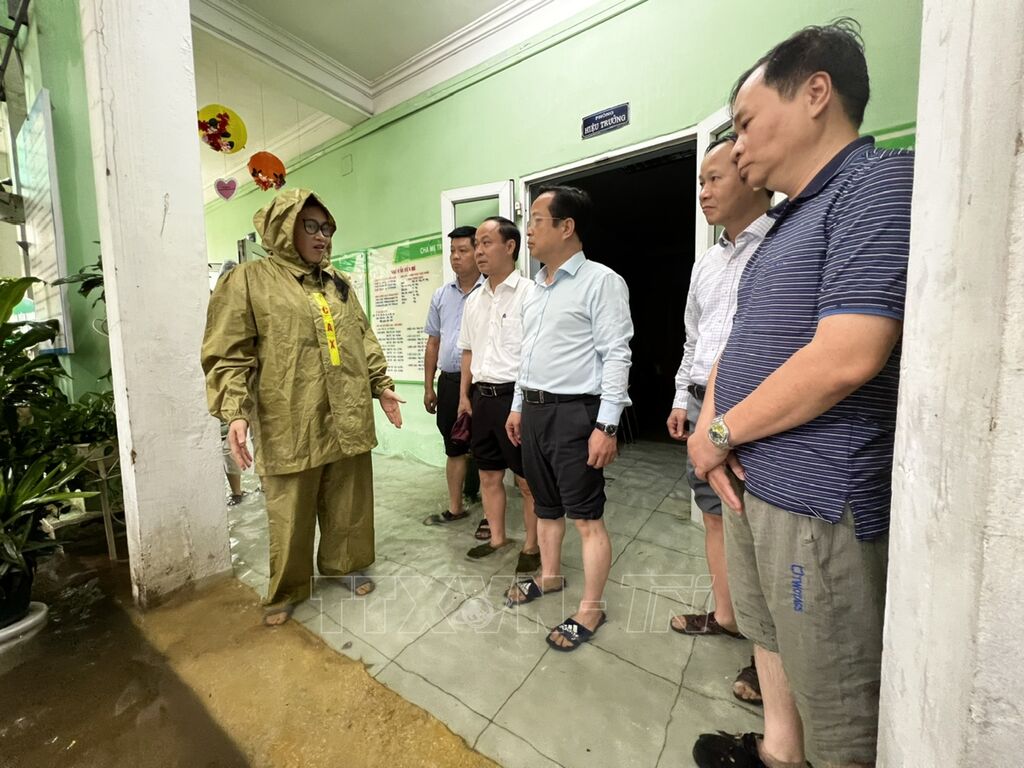 Trước tình hình mưa lớn kéo dài gây ngập úng tại nhiều khu vực, Ban Giám đốc Sở Giáo dục và Đào tạo Hà Nội đã trực tiếp kiểm tra công tác tổ chức dạy học và triển khai các phương án ứng phó với hoàn lưu bão số 11 tại một số trường học.