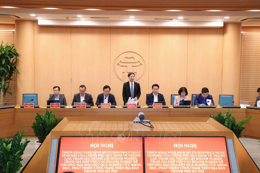 Chiều 23/10, tại Hà Nội, UBND thành phố phối hợp với Bộ Khoa học và Công nghệ tổ chức hội thảo triển khai Nghị định số 271/2025/NĐ-CP của Chính phủ "Quy định về thành lập, tham gia thành lập doanh nghiệp, tham gia góp vốn vào doanh nghiệp để thương mại hóa kết quả nghiên cứu khoa học, phát triển trên địa bàn thành phố Hà Nội".