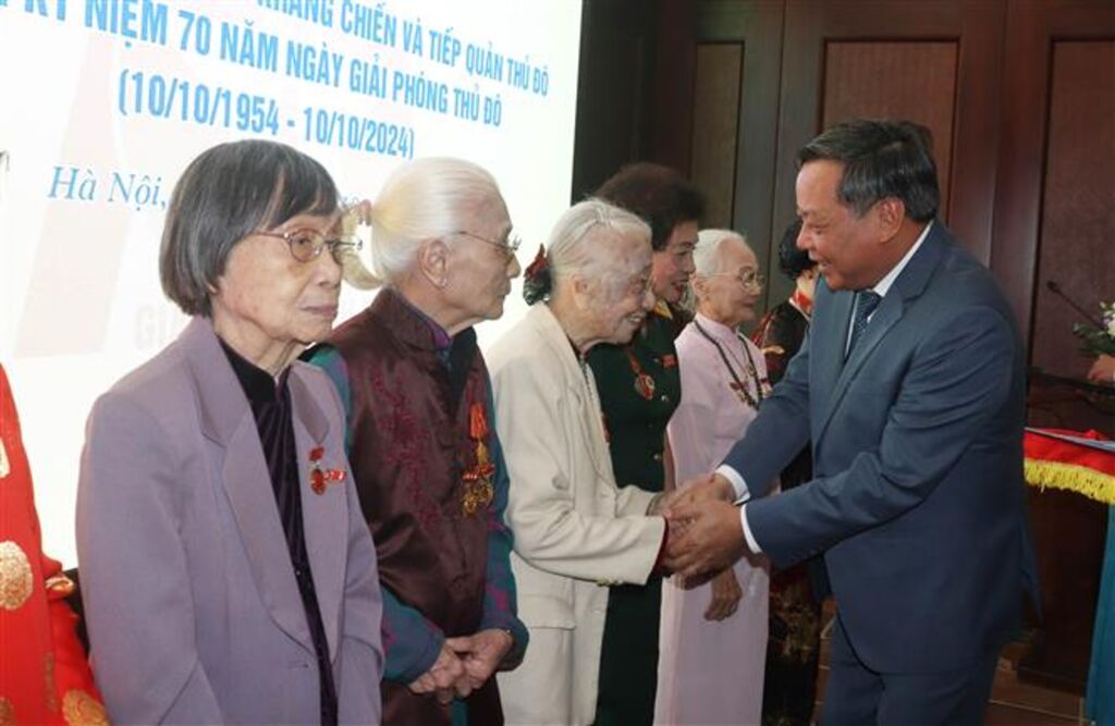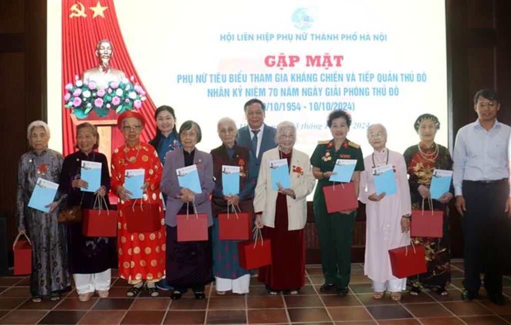 Lãnh đạo Trung ương và thành phố Hà Nội đã trao Huy hiệu Bác Hồ và tặng các phần quà ý nghĩa tới các phụ nữ tiêu biểu tham gia kháng chiến và tiếp quản Thủ đô.
