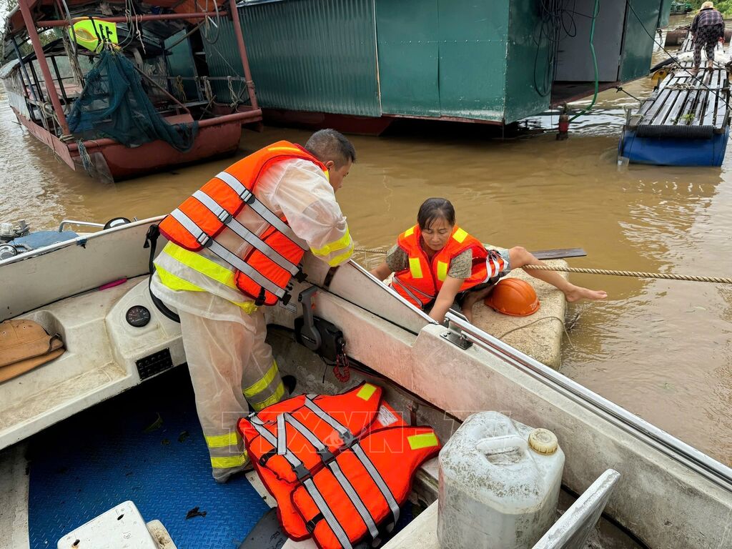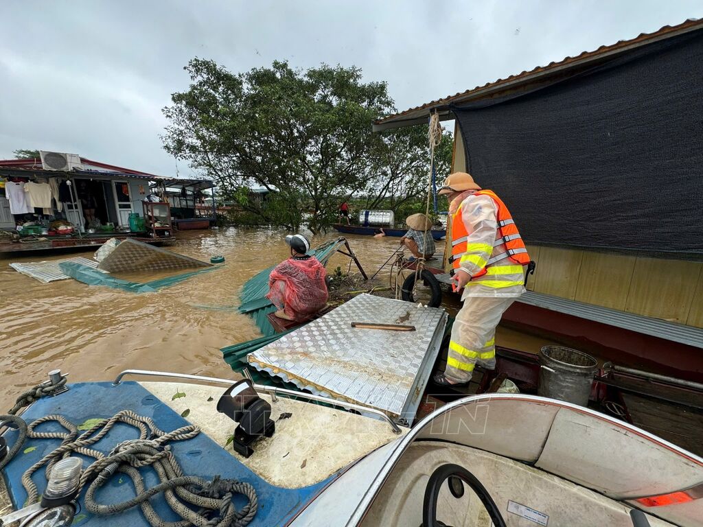 Cùng ngày, Đội Cảnh sát đường thủy số 1, Phòng Cảnh sát giao thông, Công an Hà Nội cho biết, quá trình tuần tra nắm tình hình trên tuyến sông Hồng, đơn vị phát hiện 2 nhà nổi cùng bè cá của dân do ảnh hưởng mưa bão và nước lũ lên cao bị đứt dây trôi tự do trên sông Hồng đoạn thượng nguồn cầu Vĩnh Thịnh (thị xã Sơn Tây, Hà Nội) gây nguy hiểm cho người dân và các phương tiện tàu thủy tham gia giao thông. Đơn vị đã tiếp cận đưa 2 nhà nổi và người dân cùng lồng nuôi cá vào bờ cố định an toàn./.