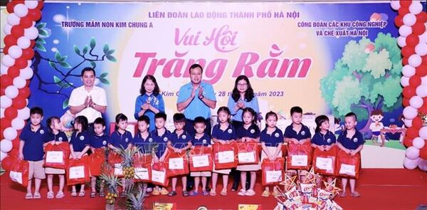 TTXVN - Tin từ Sở Lao động - Thương binh và Xã hội Hà Nội, dịp Tết Trung Thu năm 2023, nhiều cơ quan, tổ chức, đoàn thể cùng chung tay ủng hộ hơn 2 tỷ đồng (gồm tiền mặt và hiện vật) để tổ chức các hoạt động vui chơi và tặng quà cho trẻ em có hoàn cảnh đặc biệt khó khăn trên địa bàn Thủ đô.