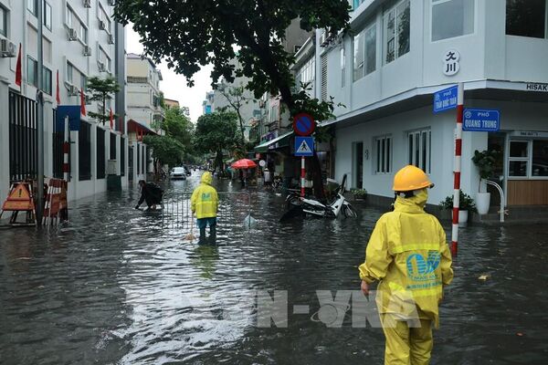 Công ty Trách nhiệm hữu hạn MTV Thoát nước Hà Nội đã bố trí công nhân thu dọn vệ sinh các miệng thu, các tấm chắn vật cản, vận hành bơm, hạ mực nước trên hệ thống sông, hồ điều hòa chính, đảm bảo vận hành an toàn hệ thống thoát nước.