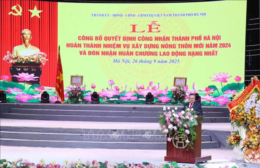 Ngày 26/9, Thành ủy, HĐND - UBND, Ủy ban MTTQ Việt Nam thành phố Hà Nội tổ chức Lễ Công bố Quyết định công nhận thành phố Hà Nội hoàn thành nhiệm vụ xây dựng nông thôn mới năm 2024 và đón nhận Huân chương Lao động hạng Nhất.