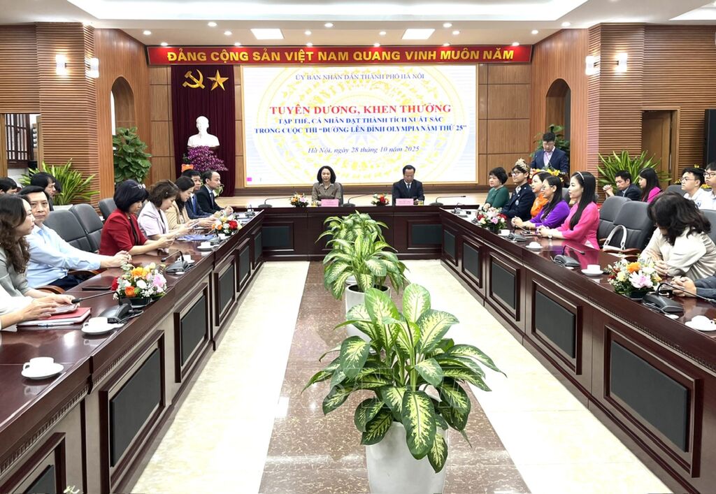 Ngày 28/10, UBND thành phố Hà Nội tổ chức Hội nghị tuyên dương, khen thưởng các tập thể, cá nhân đạt thành tích xuất sắc trong Cuộc thi “Đường lên đỉnh Olympia năm thứ 25” với sự tham dự của Phó Chủ tịch UBND thành phố Hà Nội Vũ Thu Hà, Giám đốc Sở Giáo dục và Đào tạo Hà Nội Trần Thế Cương.