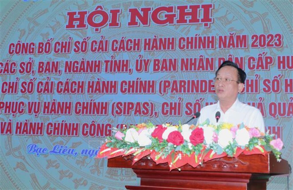 Chiều 15/8, Chủ tịch UBND tỉnh Bạc Liêu Phạm Văn Thiều chủ trì Hội nghị công bố Chỉ số cải cách hành chính năm 2023 của các sở, ban, ngành tỉnh, UBND cấp huyện; kết quả Chỉ số cải cách hành chính (PARINDEX), Chỉ số hài lòng về sự phục vụ hành chính (SIPAS), Chỉ số Hiệu quả quản trị và Hành chính công (PAPI) năm 2023 của tỉnh.