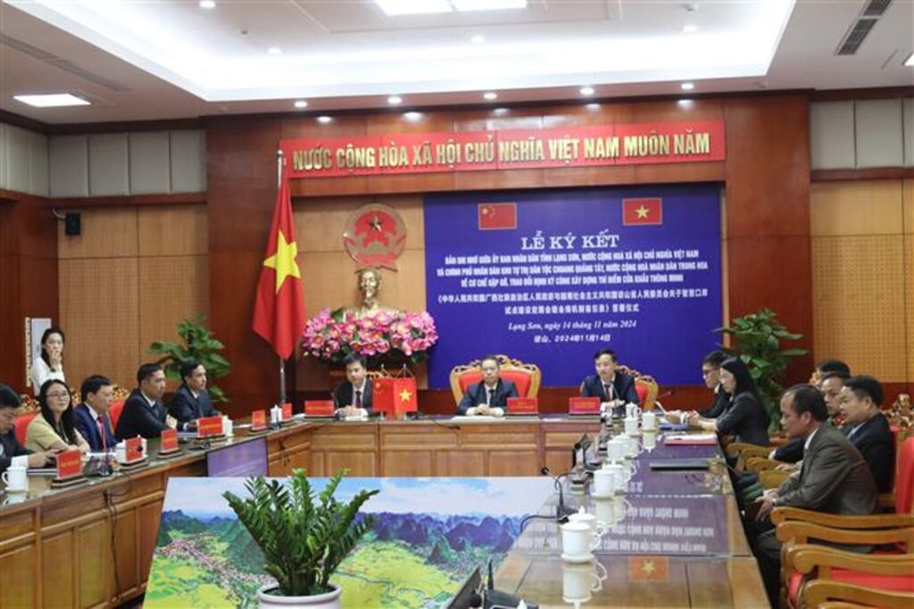 Chiều 14/11, UBND tỉnh Lạng Sơn (nước Cộng hòa xã hội Chủ nghĩa Việt Nam) và Chính phủ Nhân dân Khu tự trị dân tộc Choang Quảng Tây (nước Cộng hòa nhân dân Trung Hoa) tổ chức Lễ ký kết Bản ghi nhớ về Cơ chế gặp gỡ, trao đổi định kỳ cùng xây dựng thí điểm cửa khẩu thông minh. Lễ ký kết được tổ chức bằng hình thức trực tuyến.