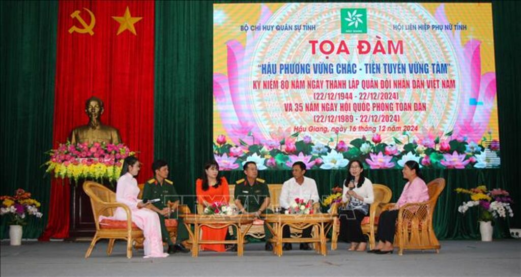 Kỷ niệm 80 năm Ngày thành lập Quân đội nhân dân Việt Nam (22/12/1944 - 22/12/2024) và 35 năm Ngày Quốc phòng toàn dân (22/12/1989 - 22/12/2024), ngày 16/12, Bộ Chỉ huy Quân sự tỉnh Hậu Giang phối hợp với Hội Liên hiệp Phụ nữ tỉnh tổ chức Tọa đàm “Hậu phương vững chắc - Tiền tuyến vững tâm”.