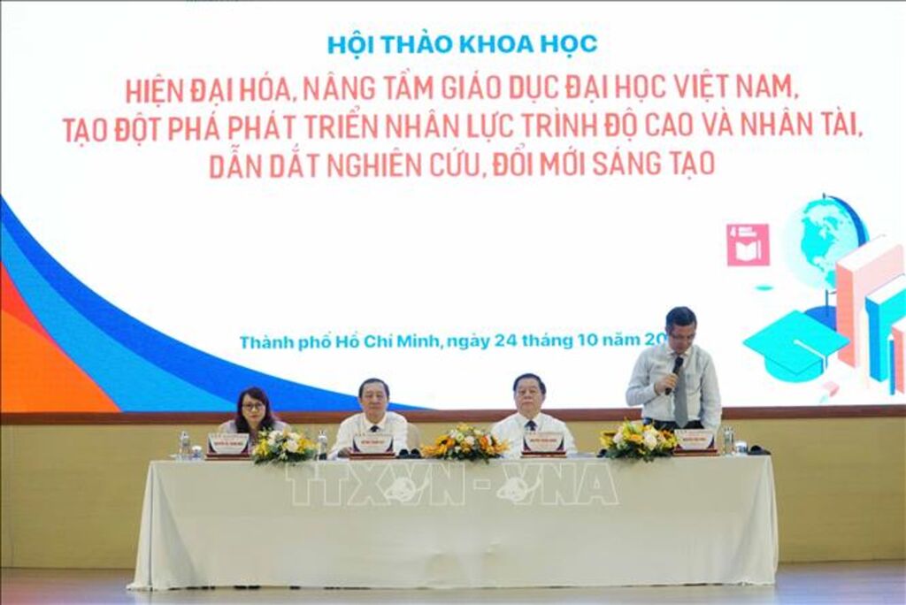 Ngày 24/10, tại Thành phố Hồ Chí Minh, Ban Tuyên giáo và Dân vận Trung ương, Bộ Giáo dục và Đào tạo, Đại học Quốc gia Thành phố Hồ Chí Minh phối hợp tổ chức Hội thảo khoa học “Hiện đại hóa, nâng tầm giáo dục đại học Việt Nam, tạo đột phá phát triển nhân lực trình độ cao và nhân tài, dẫn dắt nghiên cứu, đổi mới sáng tạo”. Hội thảo nhằm quán triệt, hướng dẫn triển khai Nghị quyết số 71-NQ/TW của Bộ Chính trị về đột phá phát triển giáo dục và đào tạo, nhất là các nội dung liên quan đến giáo dục đại học; đồng thời nâng cao nhận thức, đề xuất, kiến nghị cụ thể hóa các giải pháp đột phá để hiện đại hóa, nâng tầm giáo dục đại học Việt Nam.