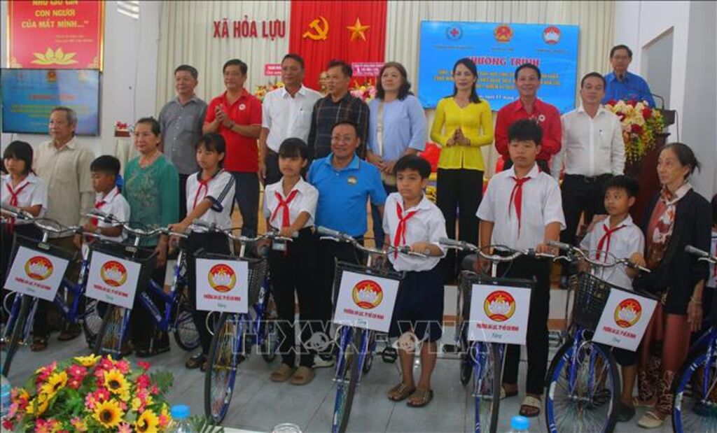 Dịp này, nhà hảo tâm đã trao tặng 200 phần quà cho gia đình khó khăn; 100 phần quà và 12 xe đạp cho học sinh có hoàn cảnh khó khăn của xã Hỏa Lựu./.