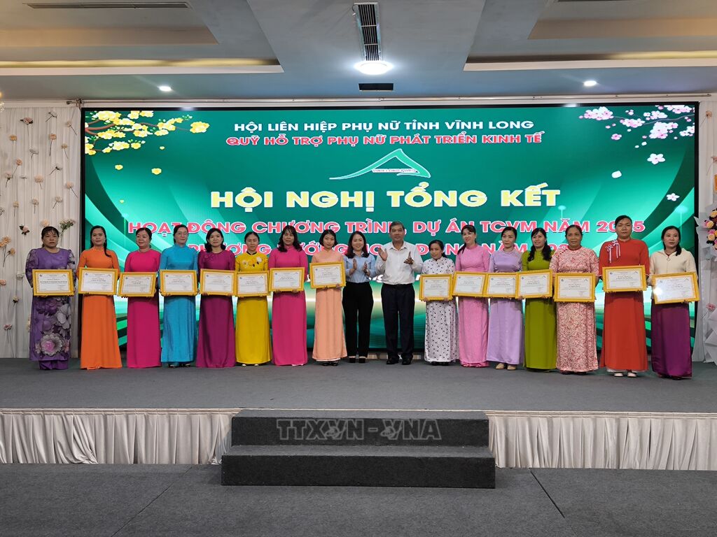 Dịp này, Quỹ hỗ trợ phụ nữ phát triển kinh tế tỉnh Vĩnh Long khen thưởng 1 tập thể và 140 cá nhân có thành tích hoàn thành xuất sắc nhiệm vụ Chương trình dự án Tài chính vi mô năm 2025./.
