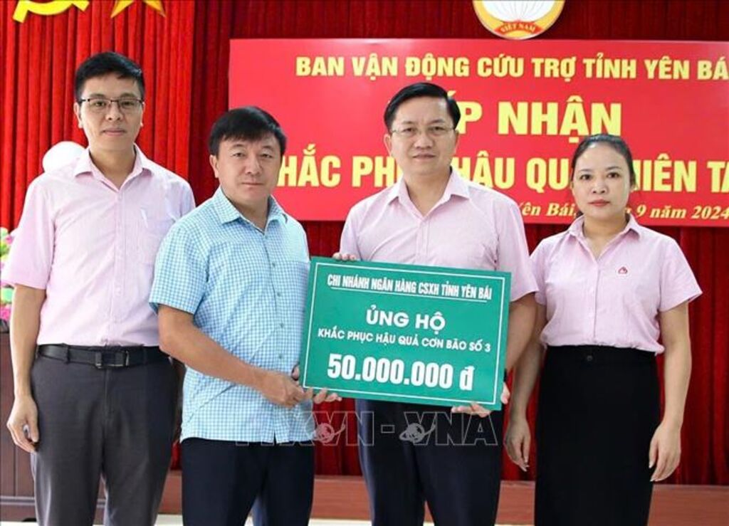 Chia sẻ với những mất mát, thiệt hại và khó khăn của người dân vùng lũ, Ngân hàng Chính sách xã hội tỉnh Yên Bái đã phát động tới toàn thể cán bộ, nhân viên trong toàn tỉnh đóng góp tối thiểu 1 ngày lương, đồng thời trích quỹ phúc lợi xã hội để hỗ trợ tỉnh Yên Bái 1 tỷ đồng làm nhà ở cho các hộ bị thiệt hại do bão số 3.