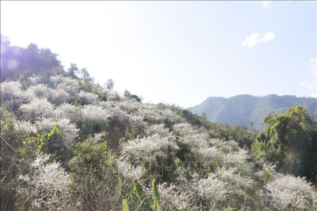 Từ giữa tháng 1, các cây mận bắt đầu nở hoa, tạo nên không gian thơ mộng giữa núi rừng.
