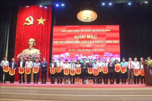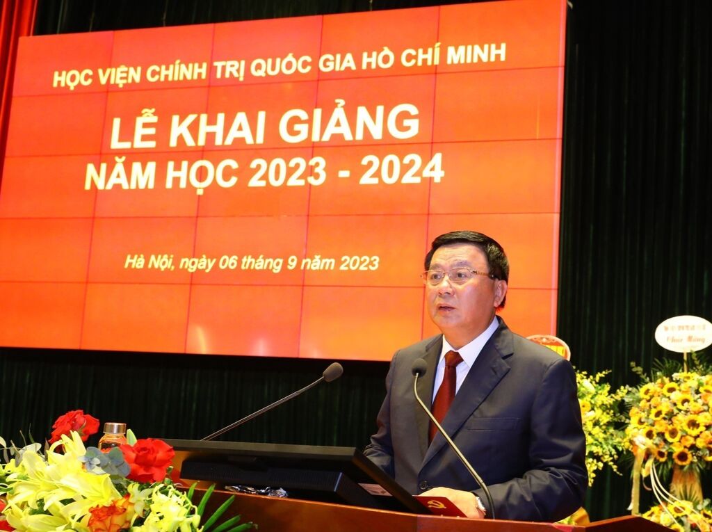 TTXVN - Sáng 6/9, tại Hà Nội, Học viện Chính trị quốc gia Hồ Chí Minh tổ chức khai giảng năm học 2023-2024 theo hình thức trực tiếp kết hợp trực tuyến, với các điểm cầu tại 5 học viện trực thuộc và trường chính trị ở các tỉnh, thành phố trong cả nước.