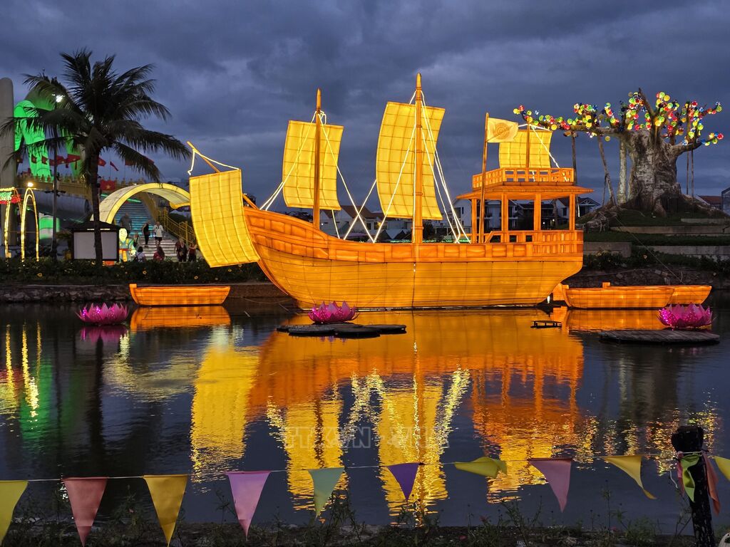 Không gian mặt đất tại đảo Ký Ức Hội An cũng được thiết kế theo chủ đề “Châu Ấn Thuyền – Bức tranh di sản”, lấy cảm hứng từ giai đoạn hưng thịnh của thương cảng Hội An thế kỷ XVII. Hình ảnh Châu Ấn Thuyền (Shuinsen) – biểu tượng giao thương Việt Nam – Nhật Bản được tái hiện bằng hệ thống đèn lồng nghệ thuật quy mô lớn, kết hợp các hoạt động trưng bày làng nghề truyền thống, workshop trải nghiệm và minishow nghệ thuật.