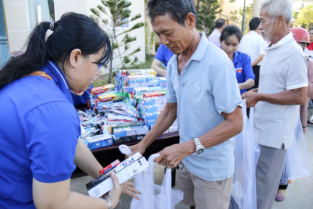 Tại đây, đơn vị đã tổ chức “Hội chợ 0 đồng" với 400 suất quà gồm nhiều nhu yếu phẩm thiết yếu trong đời sống hàng ngày cho người dân lựa chọn như: Gạo, mì tôm, quần áo, dầu ăn, nước mắm… với tổng giá trị hơn 600 triệu đồng. Cũng tại chương trình, Ban vận động Quỹ Vì người nghèo tỉnh phối hợp Hội Chữ thập đỏ tổ chức “Tết Nhân ái” trao hỗ trợ cho 51 hộ nghèo và 92 hộ cận nghèo tại phường Phú Thủy với mức hỗ trợ 500.000 đồng/1 hộ nghèo và 300.000đồng/1 hộ cận nghèo.