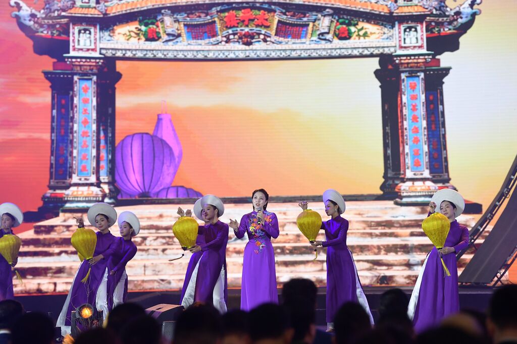 Dòng chảy nghệ thuật lan tỏa vào miền Trung qua ca khúc “Mùa Xuân nho nhỏ”, cùng những sắc tím Huế, ánh đèn lồng Hội An và những tà áo dài truyền thống… tôn vinh vẻ đẹp văn hóa miền Trung.