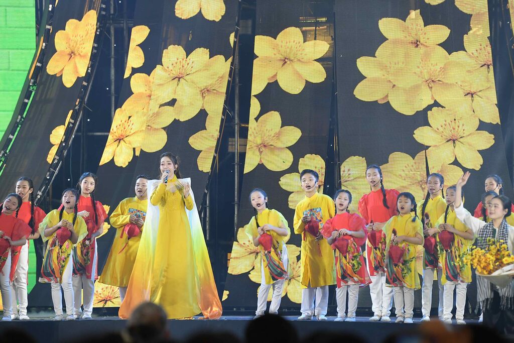 Trong đó, hoạt cảnh “Xúc xắc xúc xẻ” với hình ảnh 50 thiếu nhi trong trang phục áo dài đa sắc, cùng những giai điệu đồng dao mộc mạc, trong trẻo gợi nhắc những giá trị văn hóa dân gian quen thuộc, mang đến sắc thái tươi mới, hồn nhiên cho chương trình.