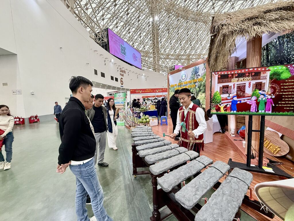 Trong tổng thể không gian hội chợ, gian hàng “Đồng Nai - Hội tụ tinh hoa văn hóa, lan tỏa giá trị du lịch” nổi bật bởi cách kể chuyện thông qua văn hóa bản địa. Điểm nhấn đặc biệt chính là phần trình diễn đàn đá - một loại nhạc cụ cổ xưa gắn liền với đời sống cư dân Tây Nguyên và Đông Nam Bộ. Giữa không gian sôi động của hội chợ, tiếng đàn đá vang lên mộc mạc, nguyên sơ nhưng đầy chiều sâu đã tạo ấn tượng đặc biệt, níu chân nhiều du khách dừng chân, lắng nghe và suy ngẫm.