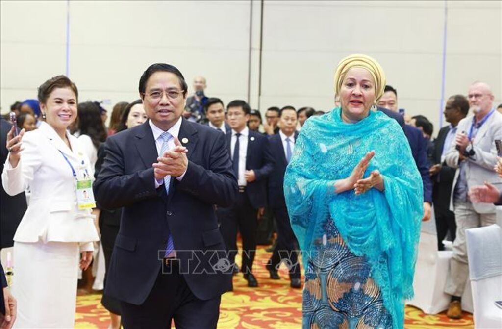 Phát biểu kết luận Phiên Đối thoại, Thủ tướng Phạm Minh Chính đánh giá cao các bài phát biểu của lãnh đạo các quốc gia, ý kiến thảo luận và đề xuất chất lượng của đại diện các tổ chức, doanh nghiệp quốc tế. Thủ tướng chia sẻ, mặc dù đất nước bước ra từ chiến tranh, từng phải đối mặt với bao vây, cấm vận, là nước đang phát triển, có nền kinh tế đang chuyển đổi, độ mở lớn, chịu tác động mạnh trước các thách thức bên ngoài nhưng đất nước luôn đoàn kết, chung tay, chung sức, đồng lòng, chưa bao giờ bỏ người dân nào lại phía sau.