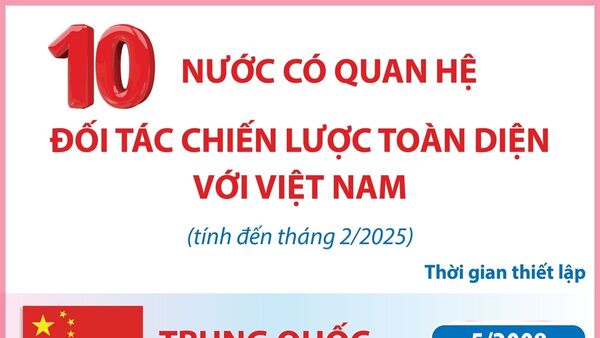 10 nước có quan hệ Đối tác chiến lược toàn diện với Việt Nam (tính đến tháng 2/2025)