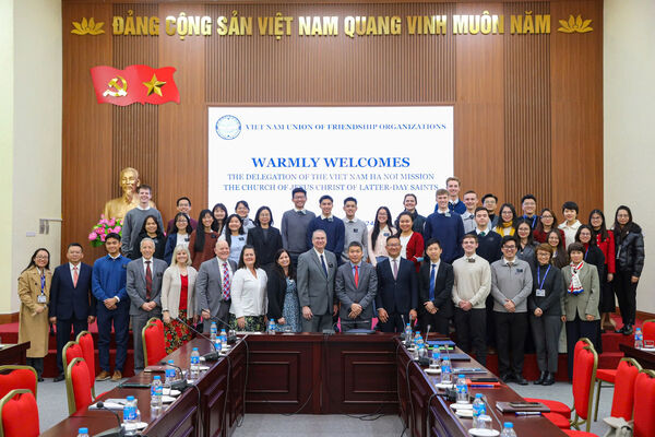 Chủ tịch Liên hiệp các tổ chức hữu nghị Việt Nam tiếp, trao đổi thông tin với Đoàn tình nguyện viên Giáo hội Mặc Môn