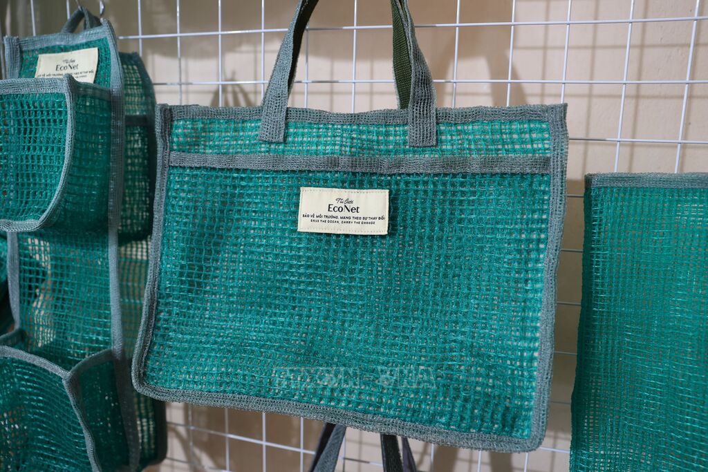 Từ những mảnh lưới vụn tưởng chừng vô giá trị bị bỏ đi, phụ nữ Long Sơn đã tạo nên những sản phẩm mang giá trị kinh tế, xã hội và môi trường.