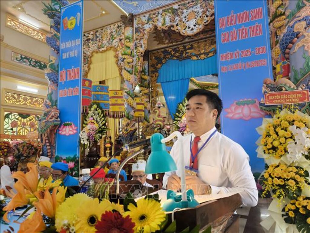 Phát biểu tại Đại hội, ông Nguyễn Phúc Nguyên – Trưởng phòng Cao Đài, Ban Tôn giáo Chính phủ đánh giá cao những kết quả mà Hội thánh Cao Đài Tiên Thiên đạt được trong nhiệm kỳ qua. Hội thánh đã có nhiều nỗ lực trong xây dựng cơ sở thờ tự khang trang, góp phần củng cố đoàn kết, tạo sự đồng thuận trong nội bộ và tích cực tham gia các hoạt động xã hội ý nghĩa.