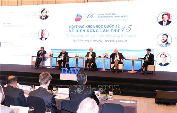 TTXVN - Trong các ngày 25 và 26/10, Hội thảo Khoa học Quốc tế về Biển Đông lần thứ 15 do Học viện Ngoại giao và các cơ quan đối tác phối hợp tổ chức diễn ra tại Thành phố Hồ Chí Minh với chủ đề “Thu hẹp vùng biển xám, mở rộng vùng biển xanh.”