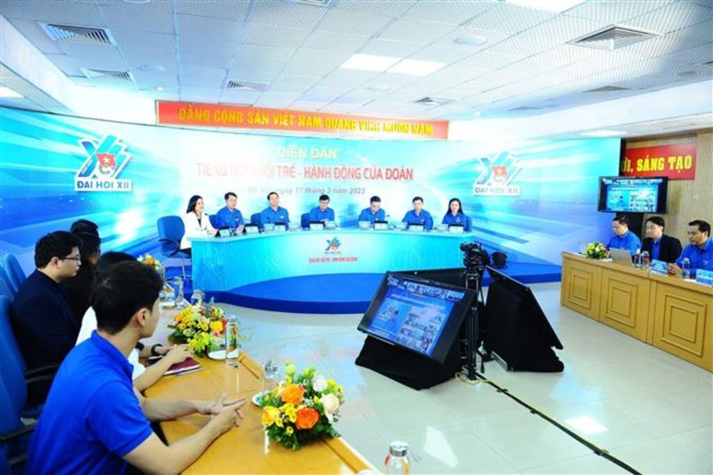 TTXVN - Trong khuôn khổ Tháng Thanh niên năm 2023, chiều 17/3, Ban Bí thư Trung ương Đoàn tổ chức Diễn đàn "Tiếng nói tuổi trẻ - Hành động của Đoàn". Đây là dịp để Ban Bí thư Trung ương Đoàn lắng nghe ý kiến, nguyện vọng, hiến kế của đoàn viên, thanh niên, thiếu niên, nhi đồng trong và ngoài nước; trao đổi về những giải pháp của Đoàn, Hội, Đội để thực hiện những vấn đề mà các bạn trẻ đang quan tâm, đặc biệt là việc triển khai thực hiện Nghị quyết Đại hội Đoàn toàn quốc lần thứ XII.