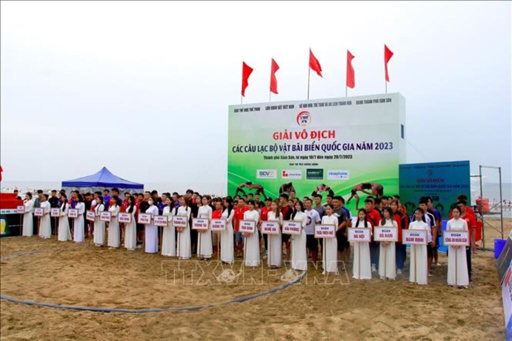 TTXVN - Ngày 17/7, tại thành phố Sầm Sơn, Sở Văn hóa, Thể thao và Du lịch tỉnh Thanh Hóa phối hợp với Cục Thể dục Thể thao, Liên đoàn Vật Việt Nam khai mạc Giải vô địch các câu lạc bộ Vật bãi biển quốc gia lần thứ nhất năm 2023.