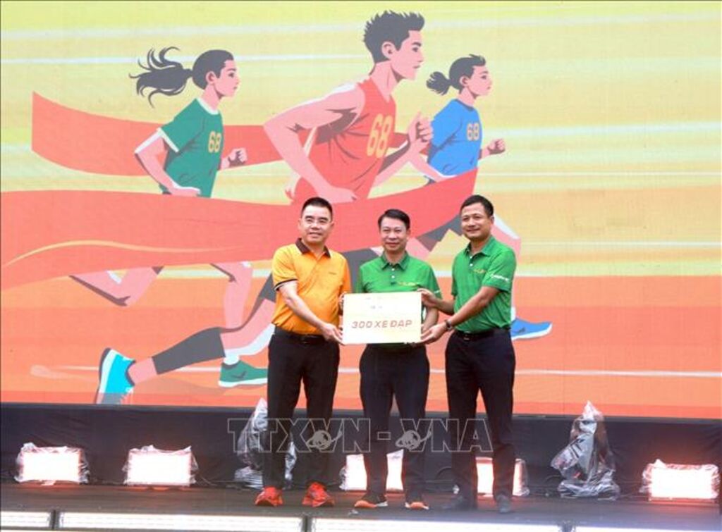 Tại lễ khai mạc, Ban tổ chức trao tặng tỉnh Phú Thọ 300 chiếc xe đạp dành cho các em học sinh nghèo vượt khó trên địa bàn tỉnh.