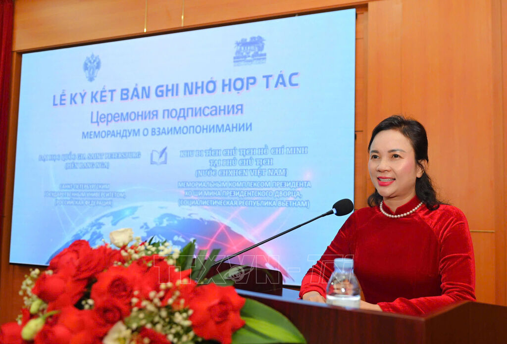 Phát biểu tại Lễ ký kết, Thứ trưởng Bộ Văn hóa, Thể thao và Du lịch Trịnh Thị Thủy khẳng định, đây là sự kiện có ý nghĩa quan trọng trong tiến trình tăng cường hợp tác văn hóa, giáo dục và nghiên cứu giữa hai nước Việt Nam - Liên bang Nga. Nhiều năm qua, Khu Di tích Chủ tịch Hồ Chí Minh tại Phủ Chủ tịch và Đại học Quốc gia Saint Petersburg đều đảm nhiệm sứ mệnh cao quý trong việc gìn giữ, nghiên cứu, phát huy và lan tỏa các giá trị văn hóa, lịch sử, đặc biệt là các giá trị về tư tưởng, đạo đức, phong cách Hồ Chí Minh. Những nỗ lực bền bỉ của hai đơn vị đã đóng góp tích cực vào việc tăng cường sự hiểu biết, giao lưu nhân dân và thúc đẩy quan hệ hữu nghị giữa hai quốc gia.