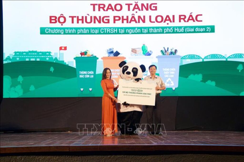 Dịp này, WWF Việt Nam đã trao tặng UBND thành phố Huế 139 bộ thùng phân loại rác cùng hàng nghìn sổ tay hướng dân phân loại chất thải rắn sinh hoạt tại nguồn. Các bộ thùng lưu chứa rác có thùng lưu chứa rác tái chế được thiết kế mới với hình dáng ngôi nhà xanh; thùng lưu chứa rác nguy hại màu cam và thùng lưu chứa rác thủy tinh màu ghi./.