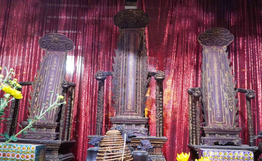 * Bộ ba ngai thờ gỗ phản ánh trình độ chạm khắc gỗ điêu luyện
