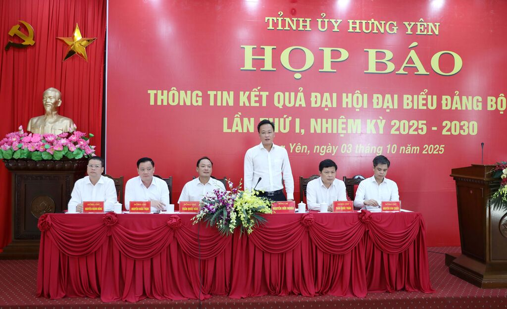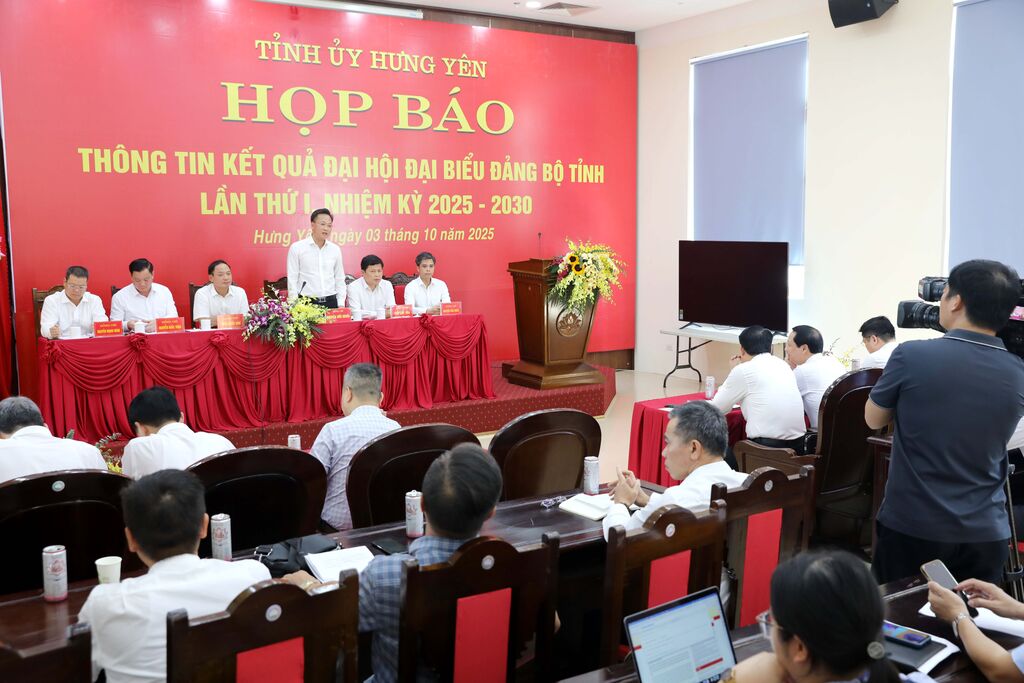 Ngay sau khi Đại hội kết thúc, chiều 3/10, Tỉnh ủy Hưng Yên tổ chức họp báo thông tin kết quả Đại hội đại biểu Đảng bộ tỉnh lần thứ Nhất, nhiệm kỳ 2025 – 2030.