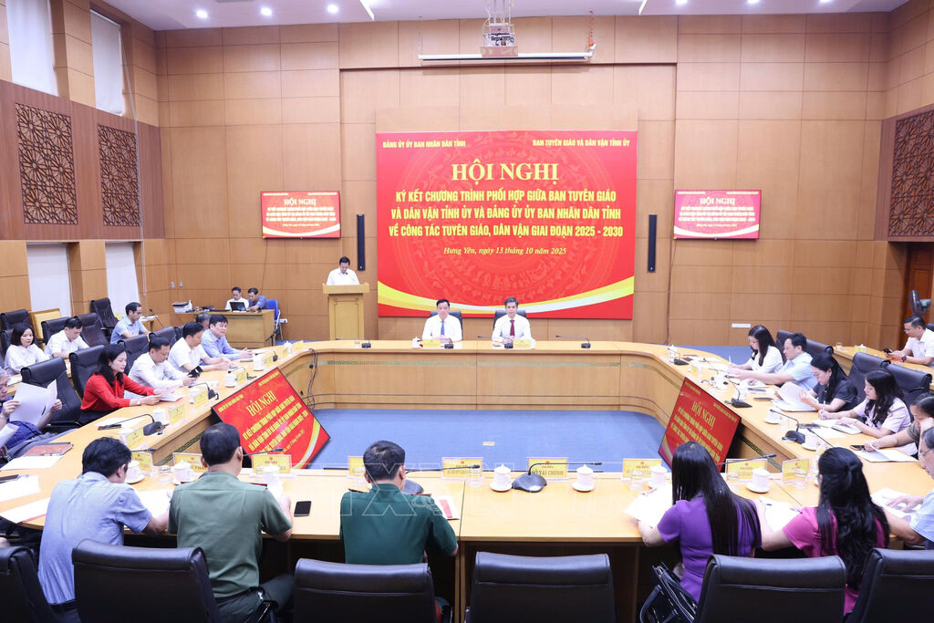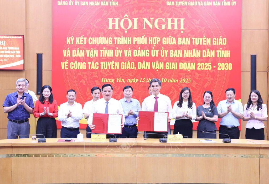 Ngày 13/10, Ban Tuyên giáo và Dân vận Tỉnh ủy với Đảng ủy UBND tỉnh Hưng Yên tổ chức ký kết chương trình phối hợp về công tác tuyên giáo, dân vận giai đoạn 2025 – 2030.