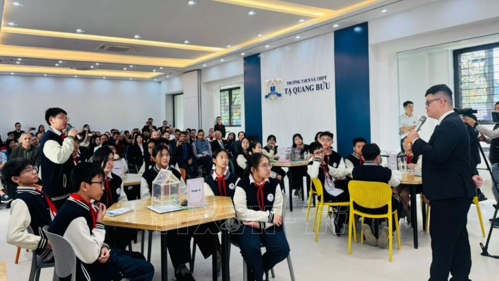 Một tiết dạy mẫu giáo dục STEM, sở hữu trí tuệ và khởi nghiệp đổi mới sáng tạo theo mô hình WIPO với chủ đề “Nhà kính trồng cây” đã diễn ra tại Trường Trung học cơ sở và Trung học phổ thông Tạ Quang Bửu (Hà Nội) sáng 28/11. Chương trình do Cục Sở hữu trí tuệ (Bộ Khoa học và Công nghệ) và Học viện Đào tạo của Tổ chức Sở hữu trí tuệ thế giới (WIPO Academy) phối hợp với Cơ quan Sáng chế Nhật Bản và Chương trình Sứ mệnh đổi mới sáng tạo Atal (Atal Innovation Mission - AIM) của Ấn Độ tổ chức.